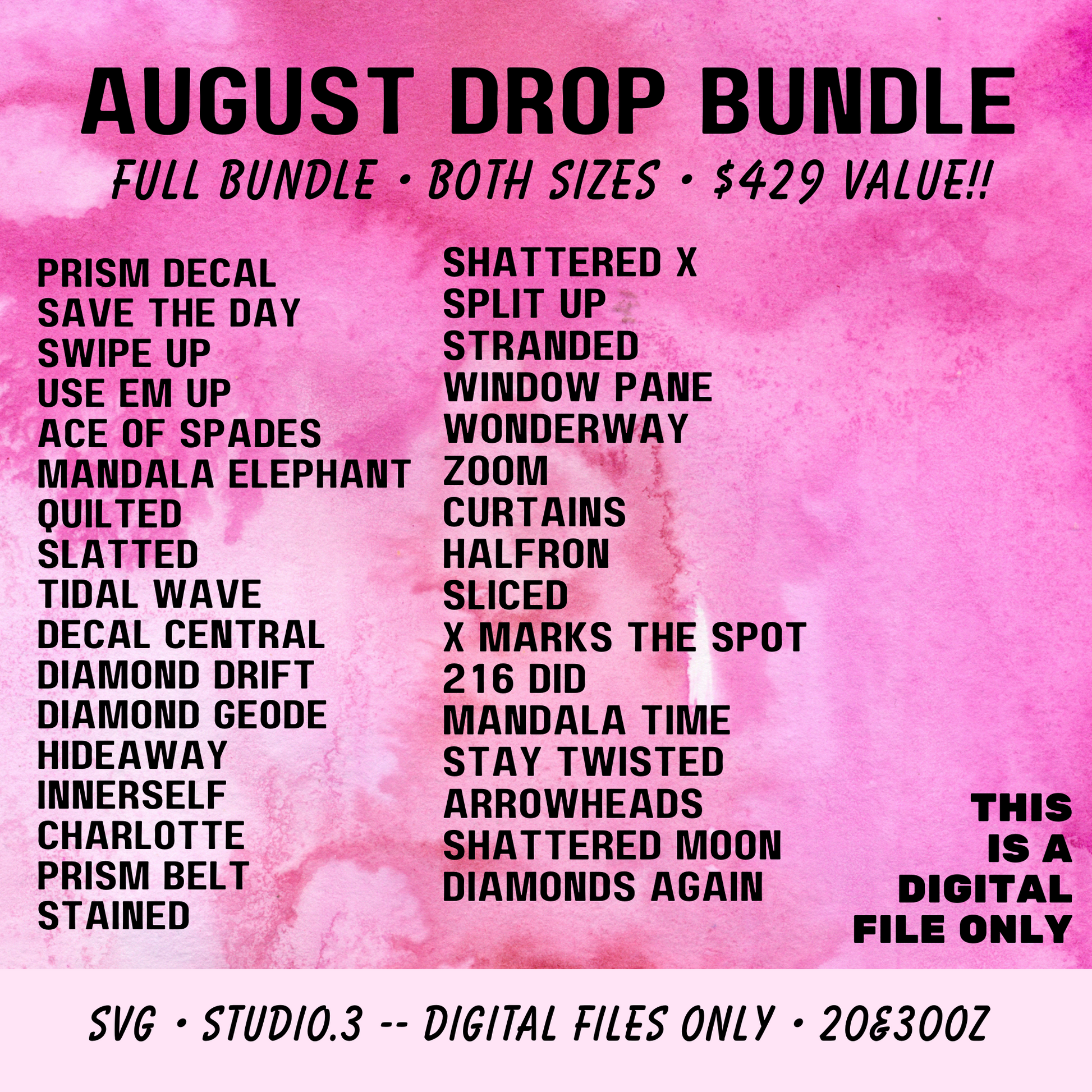 This Bundle features the ENTIRE AUGUTST 2024 DROP.